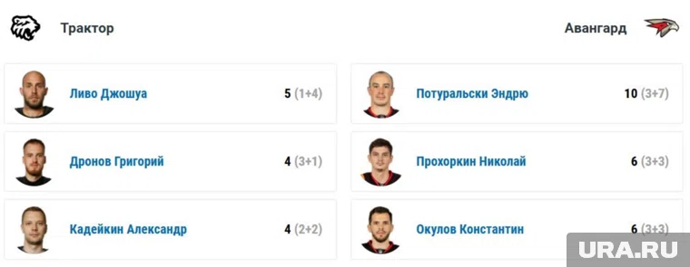 В несомненном активе «трактористов» — нападающий «Трактора» Джошуа Ливо — он среди лучших бомбардиров и ассистентов начавшейся регулярки (2+7 в шести матчах). А Семен Дер-Аргучинцев приближается к отметке в 100 очков в Лиге (сейчас в его активе 99).