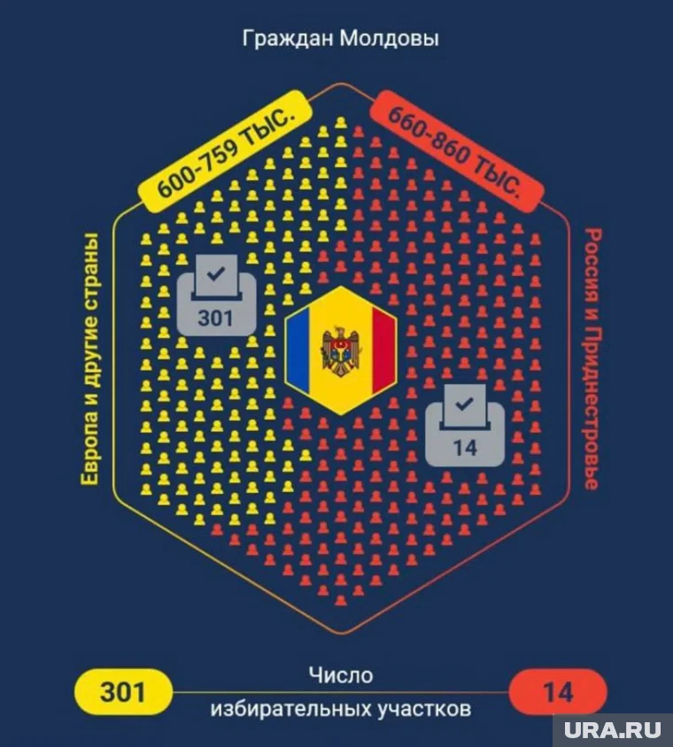 Участники круглого стола Экспертного института социальных исследований отметили, что в Европе, где численность молдавской диаспоры ниже, открыто более 300 избирательных участков, а в России и Приднестровье — всего 14. Это создает более чем двадцатикратное преимущество в доступе к голосованию для лояльных избирателей, подчеркнули эксперты. Они представили соответствующую инфографику, где можно отследить статистику по участкам.