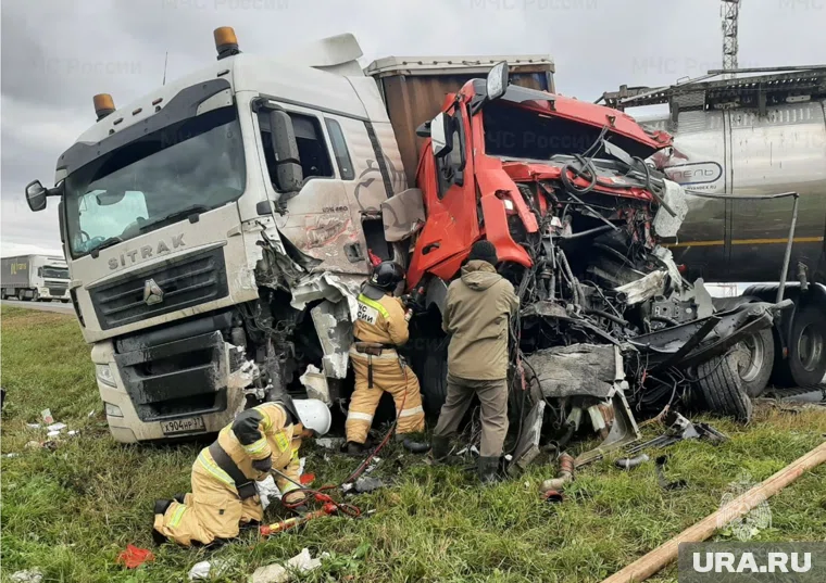 По данным Госавтоинспекции Курганской области, водитель 1975 года рождения на автомобиле «МАЗ» двигался со стороны Шадринска в направлении Ялуторовска и на 87 километре выехал на встречную полосу. В этот момент там двигался «КамАЗ» под управлением водителя 1992 года рождения. Произошло столкновение. После этого «МАЗ» врезался в стоящий на обочине автомобиль «Ситрак», который из-за технической неисправности был с включенной аварийной сигнализацией и выставленным аварийным знаком.