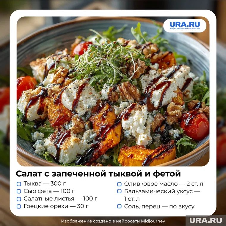 Салат с запеченной тыквой и фетой — свежий и яркий, популярный в здоровом питании. Сочетание сладости тыквы и солености сыра делает его хитом.