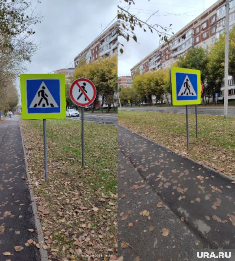 «А как ходить»: в Тюмени обнаружили странную комбинацию дорожных знаков для пешеходов. Фото