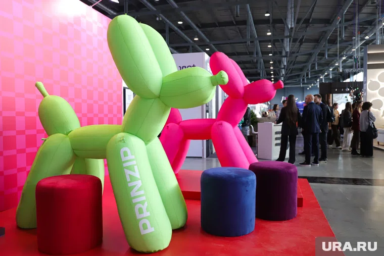 Воздушные питомцы, которые возвращают в детство, встречают гостей на стенде застройщика Prinzip. При создании арт-объекта команда вдохновлялась работами американского художника Джеффа Кунса и сделала собак символом одного из жилых комплексов.