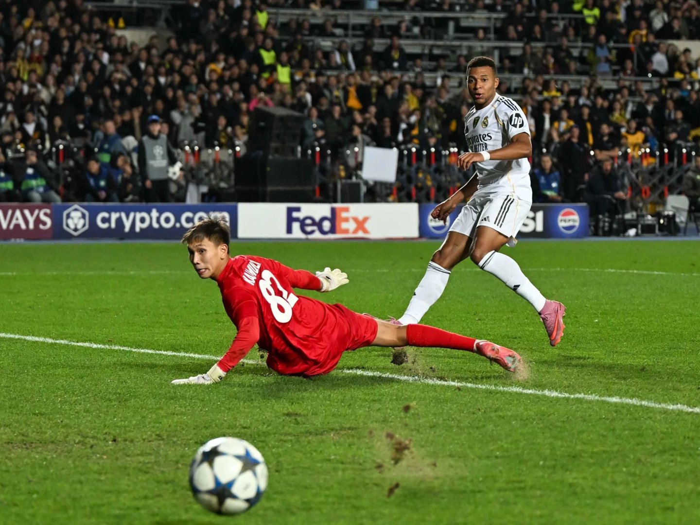 Исторический матч для казахстанского футбола закончился предсказуемо. Килиан Мбаппе оформил хет-трик и достиг впечатляющих рекордов: сравнялся с Каримом Бензема по количеству хет-триков за «Реал» в Лиге чемпионов (4), стал лучшим по хет-трикам в гостевых матчах турнира (3) и обошел Томаса Мюллера в списке бомбардиров.