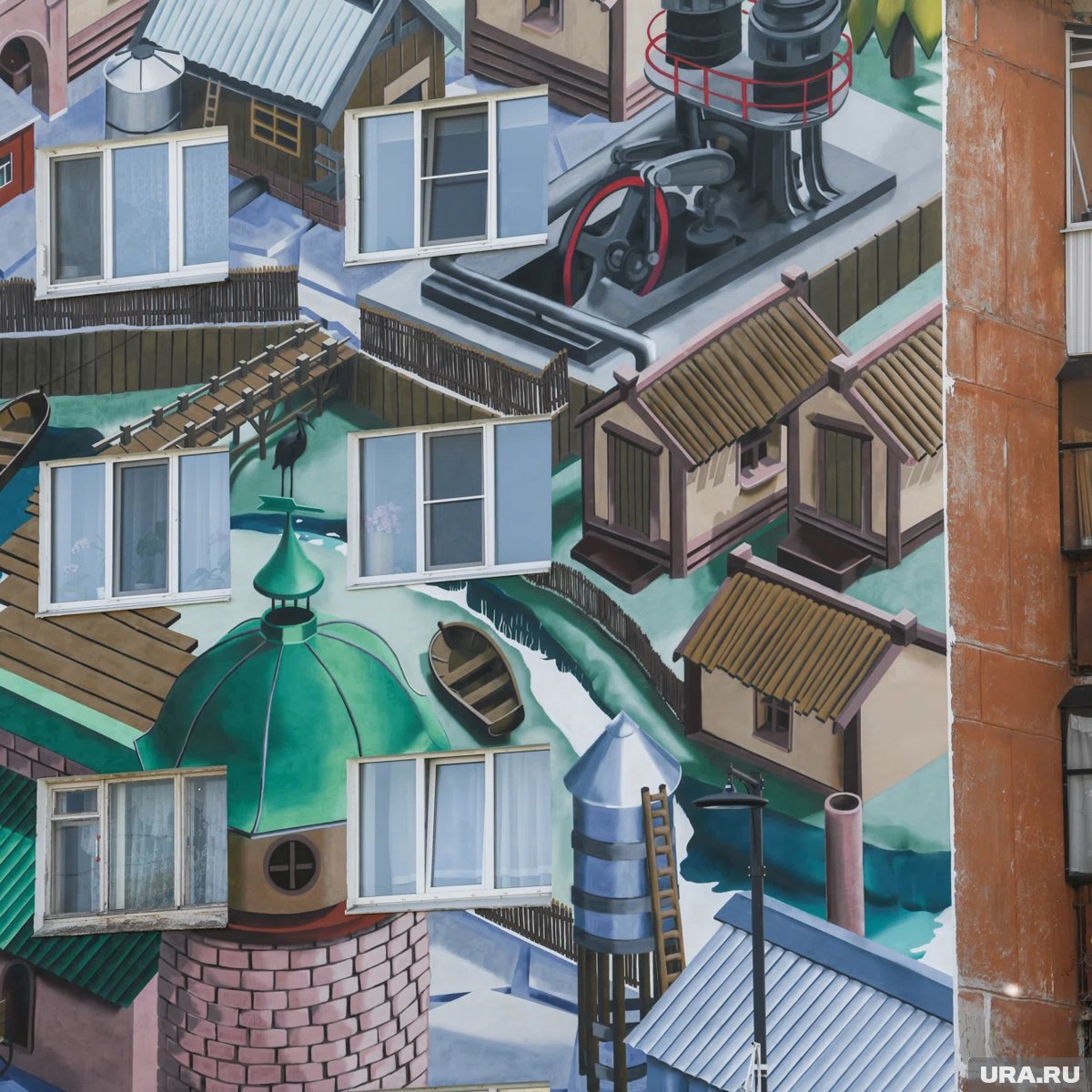 «Новый мурал появился на фасаде Детской художественной школы имени Илюшина. Эскиз придумал и воплотил в жизнь член Союза художников России и преподаватель Виктор Архипов», — указано в telegram-канале «ГТРК Курган»..