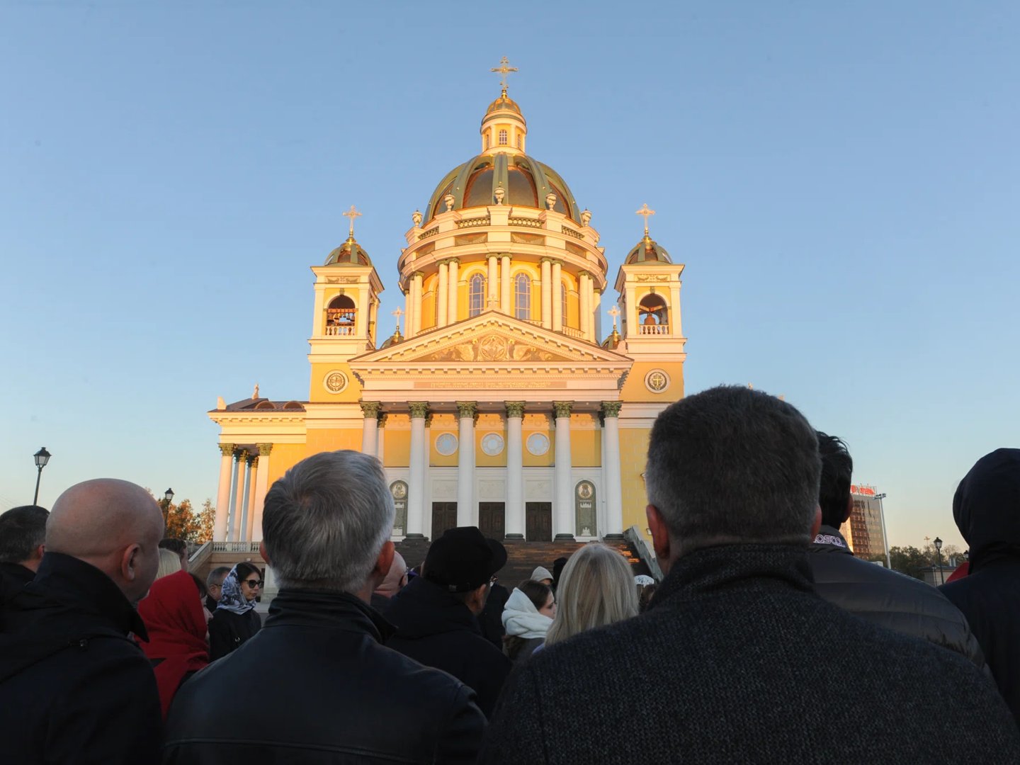 Осмотрев площадку памятника, гости посетили и сам храм Рождества Христова. Они отметили красоту и монументальность собора, назвав его одним из лучших в стране.