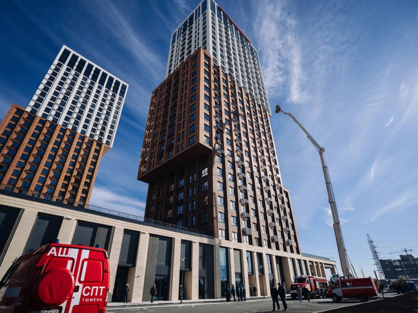 Сотрудники Главного управления МЧС России по Тюменской области провели 3 октября масштабные пожарно-тактические учения в самом высоком жилом доме города — жилом комплексе «Звездный». Учения стартовали в 11:00 и были направлены на отработку действий пожарных при возгорании в высотных зданиях. Об этом URA.RU сообщили в пресс-службе ГК «Страна Девелопмент». «Учения направлены на совершенствование профессиональных навыков личного состава и взаимодействие всех профильных служб при реагировании на пожары в зданиях повышенной этажности», — подчеркнули в пресс-службе компании. По официальной информации, в ходе учений моделировалась чрезвычайная ситуация: в одной из квартир на 31-м этаже условно возник пожар, существовала угроза распространения огня на соседние помещения и кровлю здания. Для ликвидации возгорания специалисты применили основной и специализированный пожарно-спасательный транспорт, в том числе 90-метровый коленчатый подъемник, предназначенный для работы на высоте. Объект был выбран не случайно: последний дом жилого комплекса «Звездный» является самым высоким жилым домом Тюмени, его высота достигает 99,5 метра. В составе комплекса — четыре 32-этажные башни, включая подземный уровень. Строительством занимается группа компаний «Страна Девелопмент». Дом возведен с соблюдением всех требований пожарной безопасности, однако регулярные тренировки необходимы для отработки алгоритмов действий при возможных ЧС.