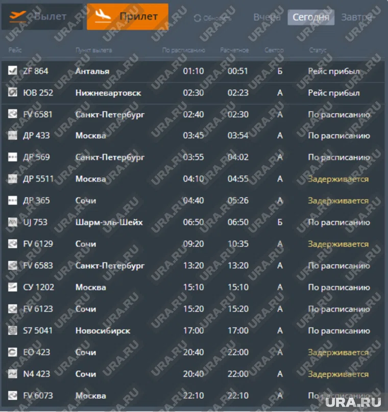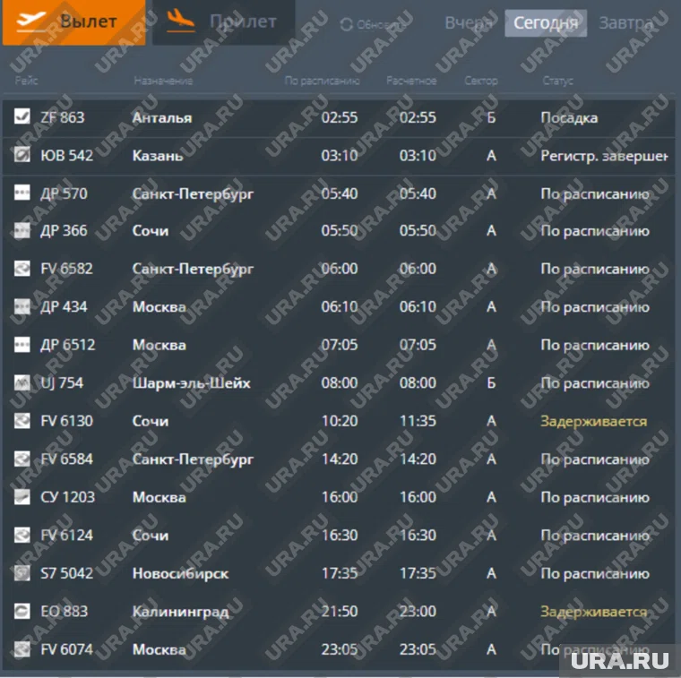 Фото: Скрин онлайн-табло аэропорта Пермь