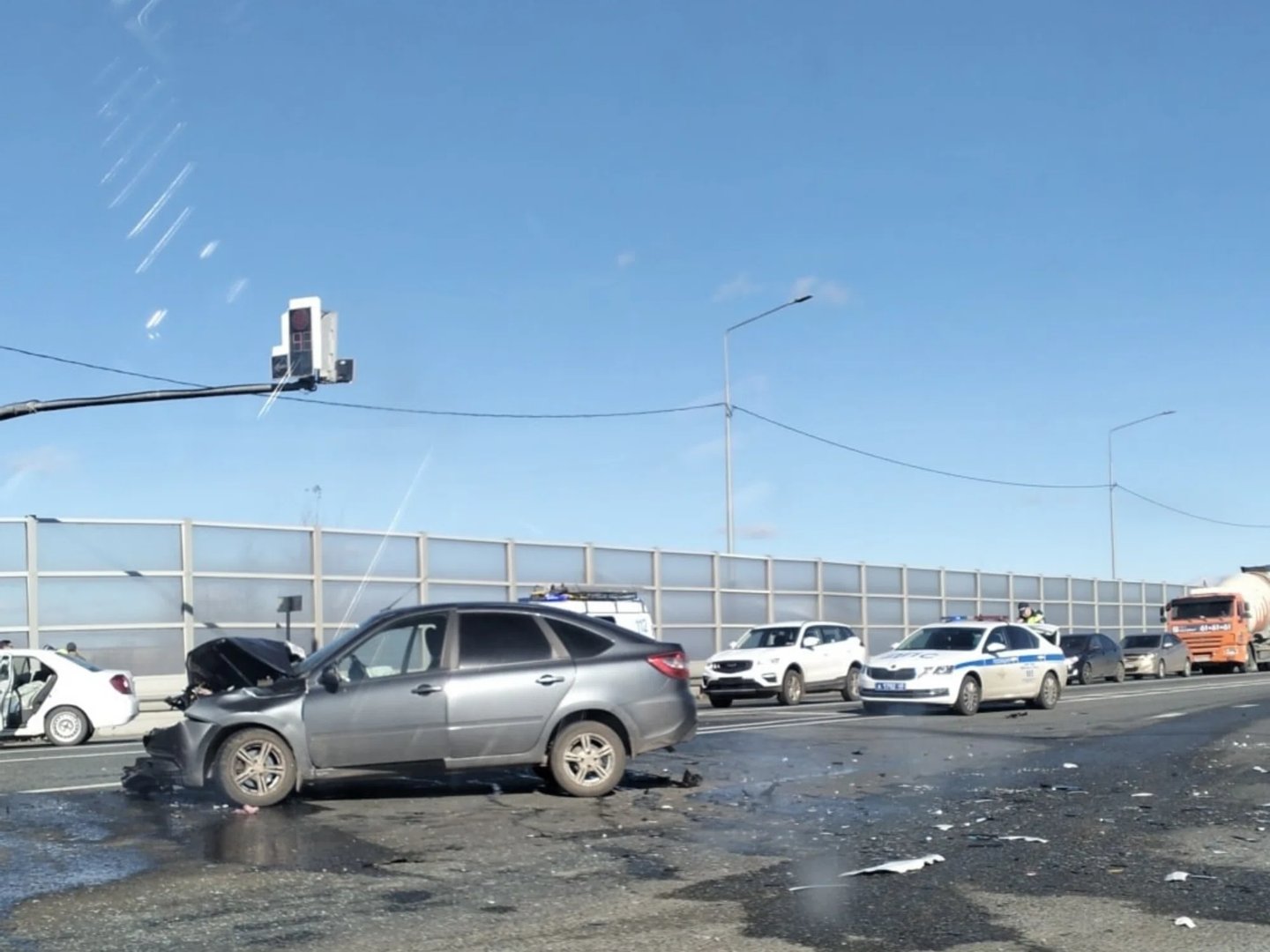 Повреждения получили три два автомобиля. У обоих сильно разбита передняя часть. Данных о пострадавших пока нет, информация уточняется.