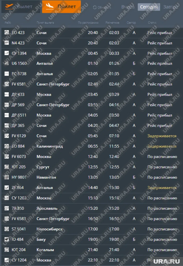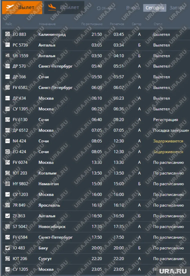 Фото: Скрин онлайн-табло аэропорта Пермь