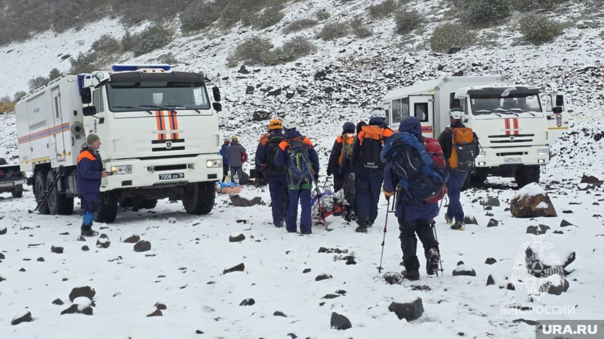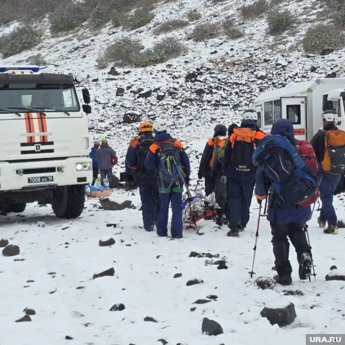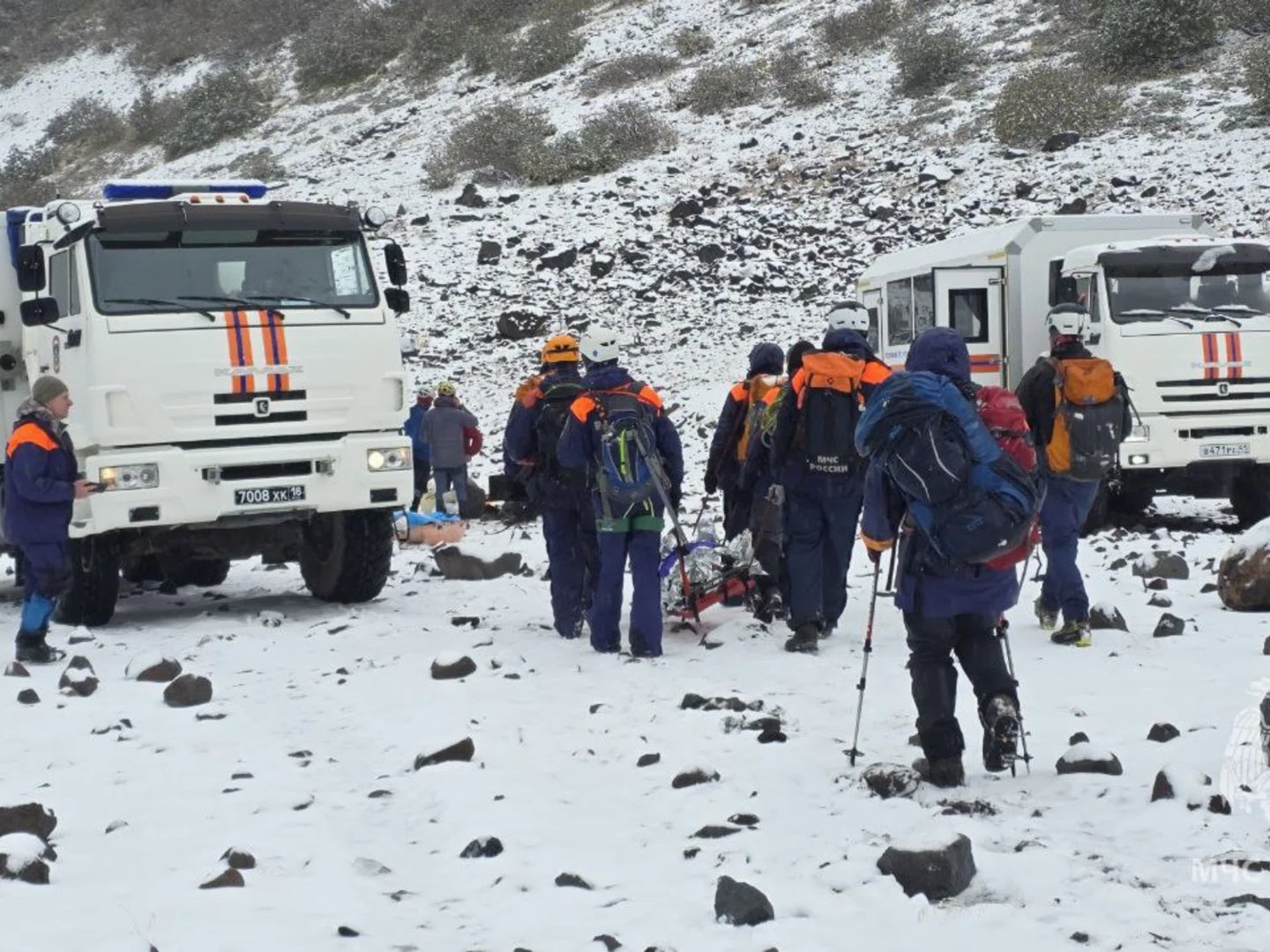 Опубликованы кадры с операцию по спасению туристов, сорвавшихся при восхождении на Вилючинский вулканФото: telegram-канал ГУ МЧС России по Камчатскому краю