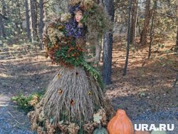 «Осенняя богиня» встречает гостей в ТОС «Утяк Южный». Жители создали ростовую куклу в соломенном платье с еловыми ветками и осенним букетом», — сообщается в группе «Курганский взгляд» в соцсети «ВКонтакте».