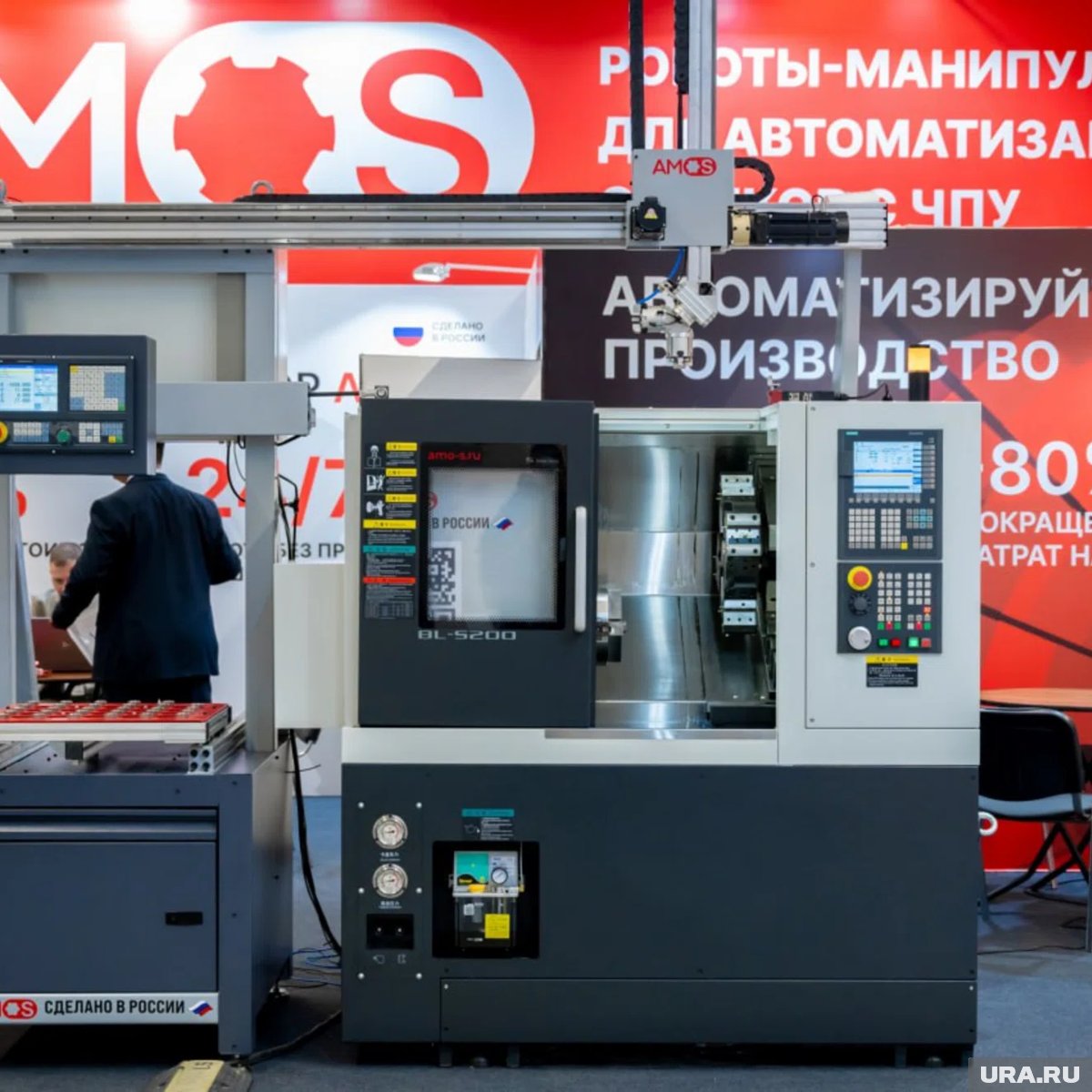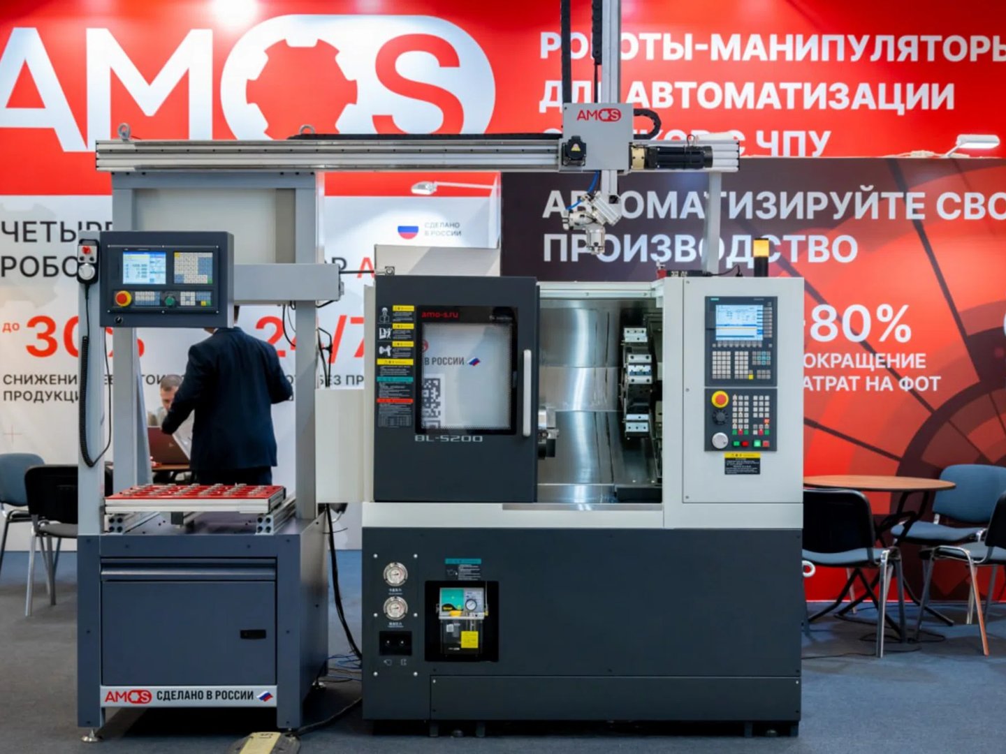 «Перед вами — стандартный токарный станок, каких множество. А вот дополнительные модули — блок манипулятора, система подачи заготовок, контроллер, — это робот AMO-S, которого можно подключить к любому станку. Иначе говоря — соединить станок с роботом (синхронизировать системы ЧПУ), и они начнут работать в паре», — рассказал URA.RU Павел Васютин.
