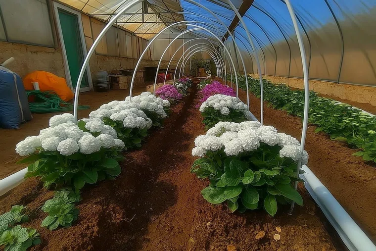 Крупнолистную гортензию Светлана Самойлова рекомендует накрывать дважды. Для начала сделать временное укрытие, необходимое при понижении ночной температуры до -2 градусов. В этот раз ставятся металлические дуги и, не пригибая, накрываются нетканкой. Второй раз накрывают при понижении температуры воздуха по ночам до -5-6 градусов.