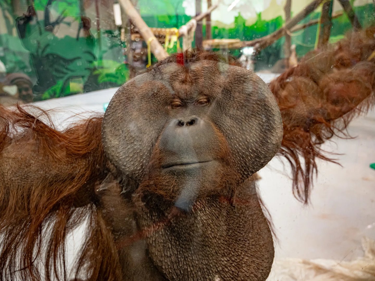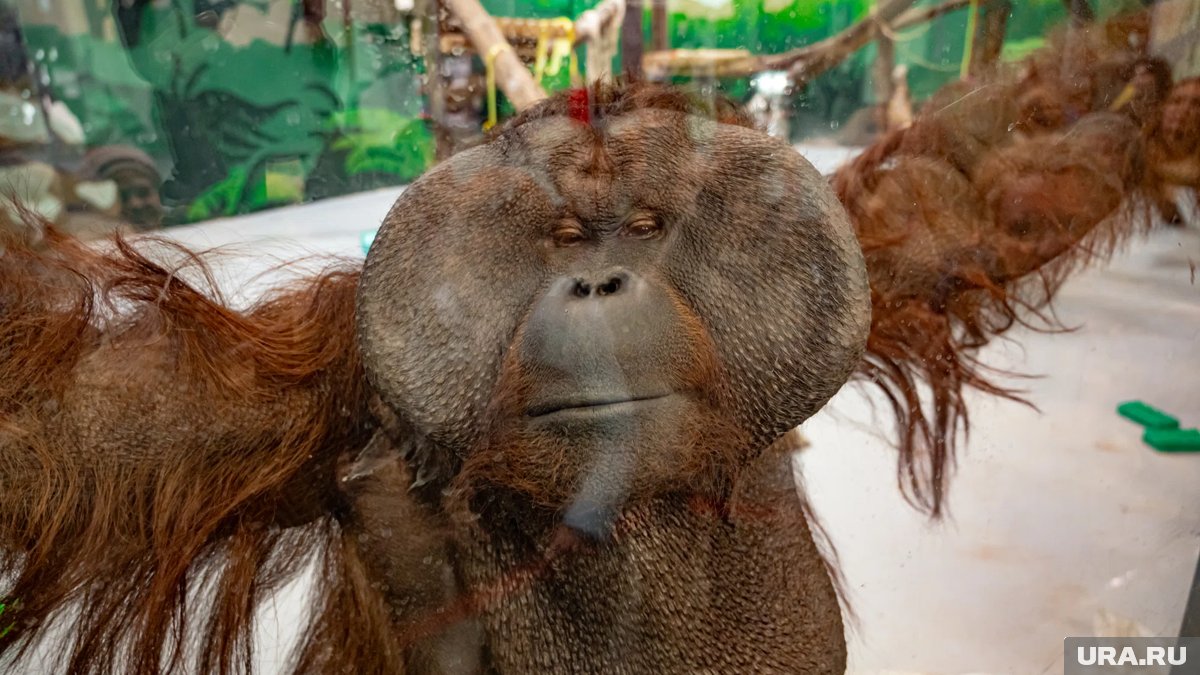 В новом пермском зоопарке 8 октября открыли теплые павильоны — «Тропический рай» и страну обезьян. Один из новых постояльцев в них — это самец борнейского орангутана по имени Билл. Он активно позировал журналистам и согласился на селфи с фотографом URA.RU.