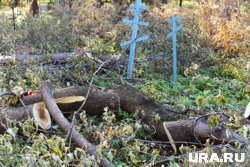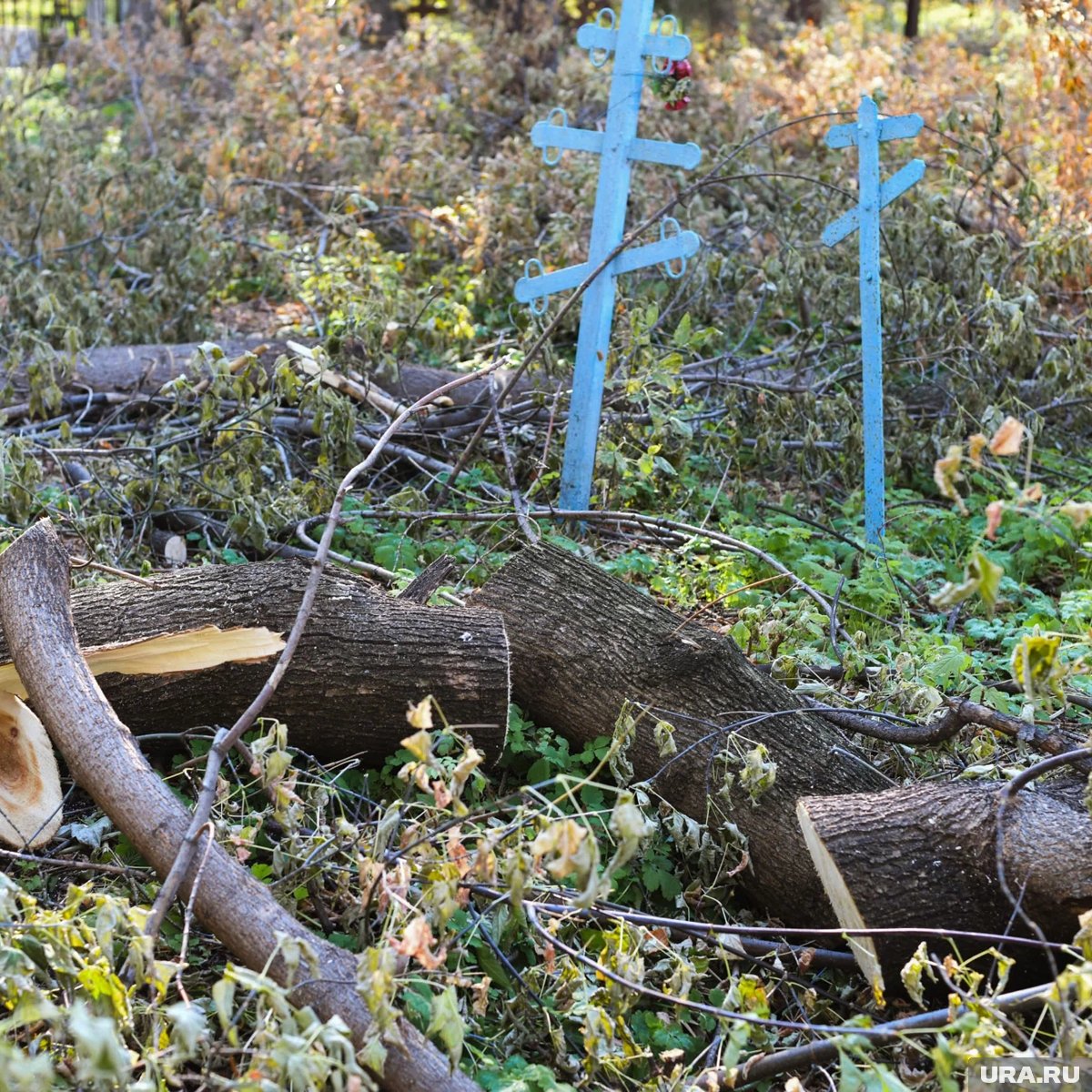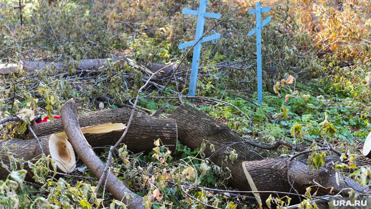 В Тюмени на историческом Текутьевском кладбище могилы завалили спиленными деревьями. Об этом сообщает журналист URA.RU с места событий.