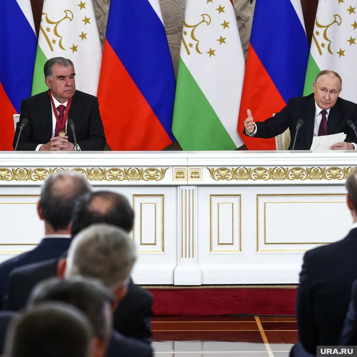 В ходе этой же встречи Путин ранее отметил, что взаимодействие между Россией и Таджикистаном развивается поступательно, полностью соответствуя формату и значимости государственного визита. Глава российского государства также подчеркнул, что обе страны выступают надежными союзниками, а Москва придает особую важность развитию партнерских связей с Душанбе. Он также поблагодарил Рахмона за пристальное внимание, которое власти Таджикистана уделяют русскому языку и культуре в стране.