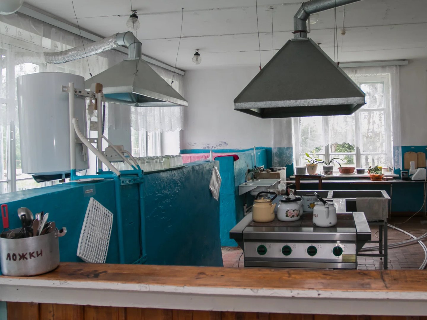 Судя по видео, ремонт в столовой школы проводился несколько лет назад и выглядит довольно свежим. Сам пищеблок, по всей видимости, не видел капитального ремонта с момента постройки образовательного учреждения.