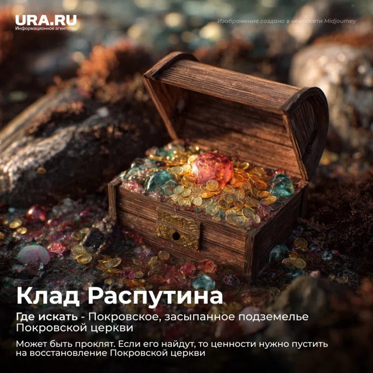 В 1929 году произошла удивительная история — один крестьянин решил сложить новую печку, выломав для этого кирпичи из стен подвала местной закрытой церкви. Во время работ он обнаружил сундук с часами, кольцами и браслетами. Мужичок решил, что золото принадлежит Распутину. Пока решал, что с ним делать, завалил раскоп землей. Но растратить клад ему не удалось — его раскулачили и отправили на север.