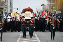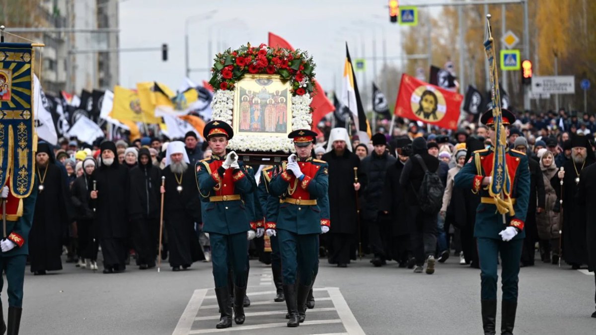 В шествии участвовали архиереи, священнослужители и прихожане из разных районов региона. Торжественное богослужение транслирует телеканал «Союз».