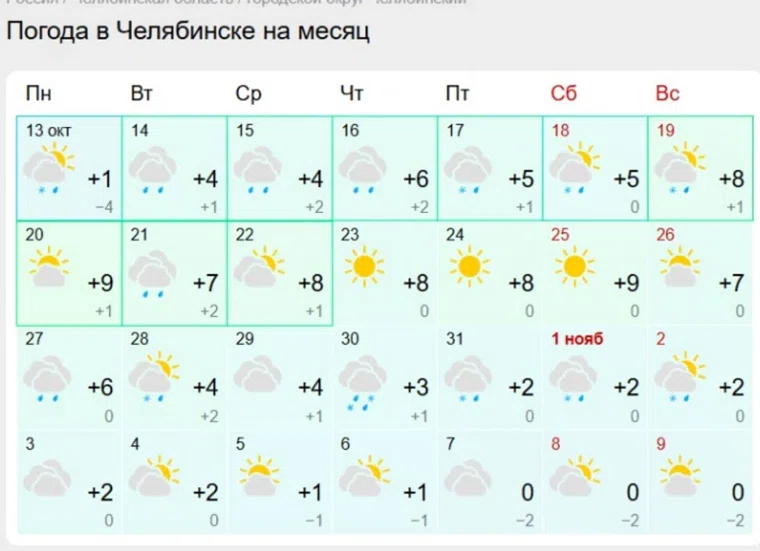 Фото: Сайт «Гисметео», https://www.gismeteo.ru/weather-chelyabinsk-4565/month/