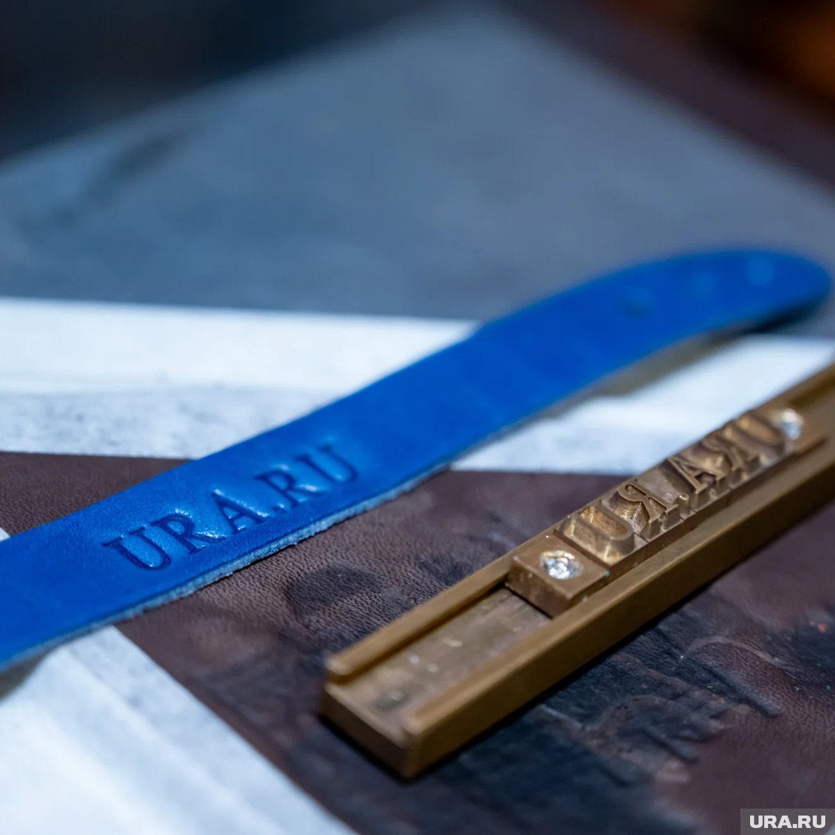 Под чутким руководством Никиты корреспондент URA.RU решил изготовить браслет на руку. «Браслеты и брелоки, это самые простые в изготовлении аксессуары», — объясняет Никита. Материал для изготовления аксессуара подбирается, исходя из того, какое изделие необходимо сделать. В нашем случае для браслета потребуется кожа толщиной 1,8-2,2 мм. Мастер предлагает на выбор кожу нескольких цветов. Останавливаем свой выбор на синем цвете — «корпоративном» цвете URA.RU.