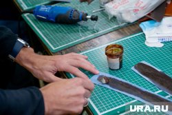Пожалуй, у каждого пермяка есть какая-либо вещь или аксессуар, сделанные из натуральной кожи. Материал, который никогда не теряет актуальность, пользуется популярностью и сейчас, в эпоху масс-маркета. Если верить сервисам онлайн-карт, в Перми работают больше десятка салонов и мастерских, где можно купить изделие из натуральной кожи: кошелек, ремень, визитницу, обложку для ежедневника. Но легко ли самому изготовить такую вещь? Корреспондент URA.RU опытным путем ответил на этот вопрос, записавшись на мастер-класс в кожевенную мастерскую «Пермский период». Немного истории Кожевенная мастерская «Пермский период» основана в 2018 году предпринимателем Никитой Пьянковым. Она занимает небольшое помещение в самом центре города, на Пермской, 80А. Сейчас в команде «Пермского периода» вместе с Никитой трудятся три человека. Определяемся с изделием и выбираем материал Под чутким руководством Никиты корреспондент URA.RU решил изготовить браслет на руку. «Браслеты и брелоки, это самые простые в изготовлении аксессуары», — объясняет Никита. Материал для изготовления аксессуара подбирается, исходя из того, какое изделие необходимо сделать. В нашем случае для браслета потребуется кожа толщиной 1,8-2,2 мм. Мастер предлагает на выбор кожу нескольких цветов. Останавливаем свой выбор на синем цвете — «корпоративном» цвете URA.RU. Делаем заготовку и вырезаем браслет Вначале нам предстоит вырезать заготовку. Для этого берем лекало — металлический резак, который Никита заказывает у сторонней компании. «На самом деле, изготовить такой браслет без специальных технических приспособлений, которыми мы сейчас пользуемся, было бы очень сложно даже опытному мастеру. Почему? Потому что кожа разная по своей структуре. И режется довольно сложно — она может быть плотной или жесткой, может растягиваться», — объясняет в процессе мастер-класса Никита. В мастерской «Пермский период» также есть резаки для обреза заготовок для сумок, кошельков, брелоков и т.д. Их чертежи Никита сам проектирует на компьютере, затем заказывает в одной из компаний в Ростове-на-Дону. Кожа, выбор на которой мы остановили, уже имеет финишное покрытие, то есть, не требует какой-либо дополнительной обработки. «Процесс выделки кожи включает в себя дубление (от слова „дуб“) — рассказывает Никита. — В составе коры дуба есть танины — вещества, которые вымывают из каркаса коллагеновых волокон все нехорошие вещества — органику. Кожа вымачивается в бочке, затем ее сушат, снова натирают жирами и маслами, чтобы придать пластичность. Если ее не насытить маслами, она будет сухой и ломкой и может потрескаться». Кладем штанц-форму на кусок кожи и аккуратно отрезаем канцелярским ножом нужный нам размер. Обрабатываем изнанку браслета специальной краской. В ее составе жидкий воск и различные масла. Это позволит защитить наше изделие от грязи, влаги и пота. Втираем краску в бахтарму (обратная поверхность выделанной кожи — прим. URA.RU) по направлению волокон. После этого необходимо дождаться, пока состав впитается в кожу. Чтобы ускорить процесс, подсушиваем кожу строительным феном. Затем черновую заготовку кладем под пресс. Сверху — штанц-форму. Прижимаем ее к коже, прилагая небольшое усилие, и вырезаем браслет. Наносим надпись Пока браслет сохнет, определяемся со штампом: буквами, цифрами, рисунком. Мы решили от