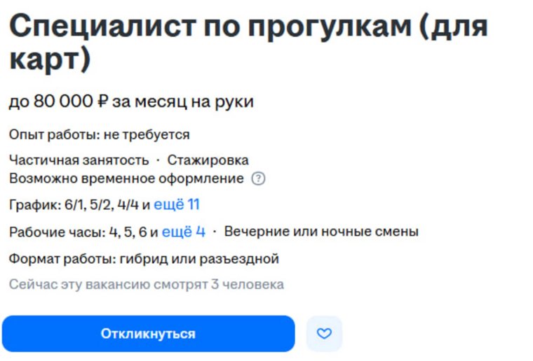 Зарплату до 80 000 рублей студенты могут получать, гуляя по улицам города и фотографируя разные городские объекты, улицы, магазины. Работодатель обещает научить всему по факту трудоустройства.