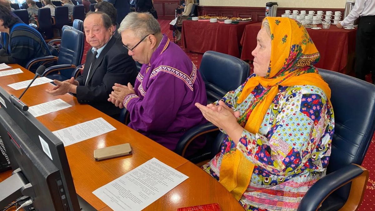 «На заседании круглого стола делегаты под руководством старейшего депутата думы ХМАО Еремея Айпина предложили властям рассмотреть вопрос выборочного зачисления представителей коренных народностей в список студентов региональной программы „Лидеры изменений Югры“. Собрание проходило в окружной думе», — передает журналист URA.RU