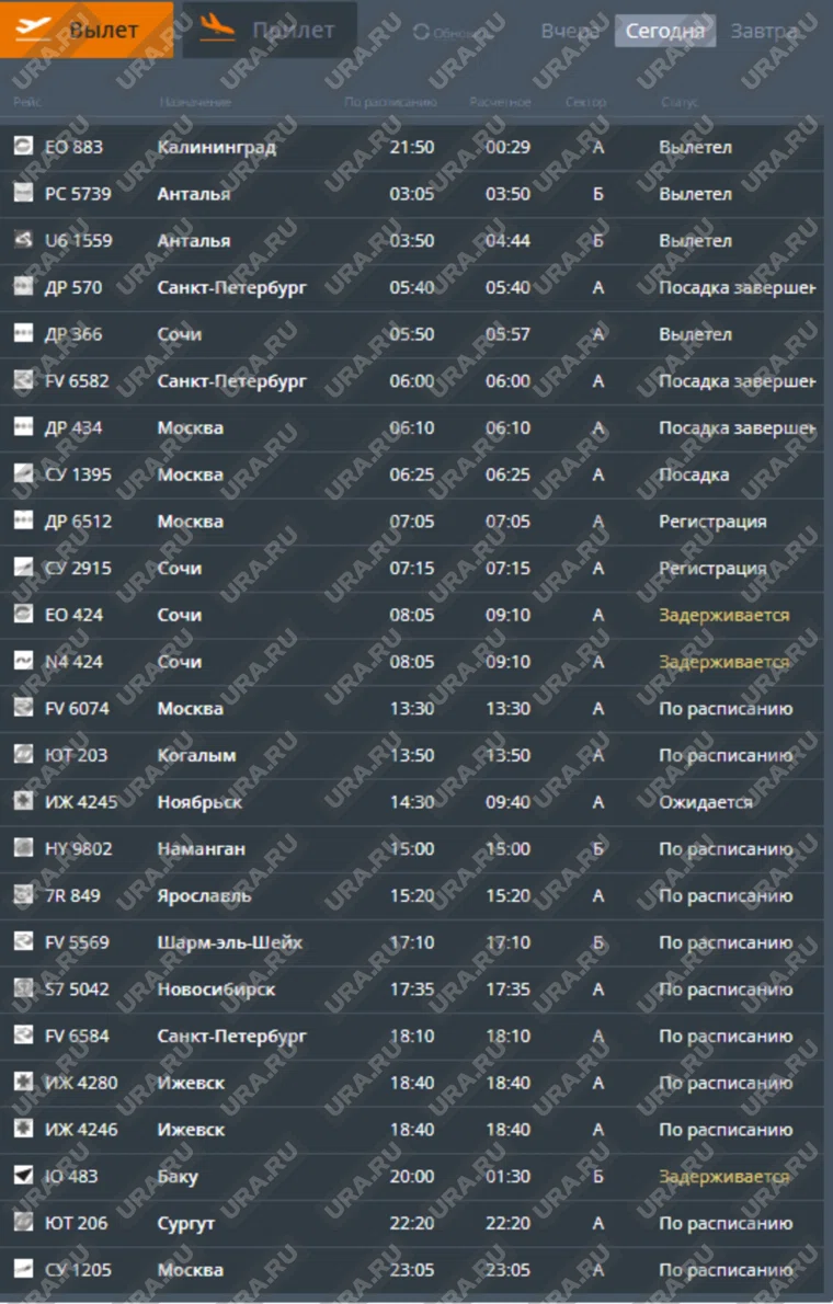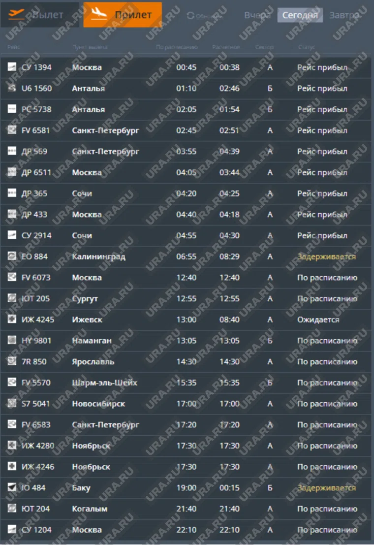 Фото: Скрин онлайн-табло аэропорта Пермь