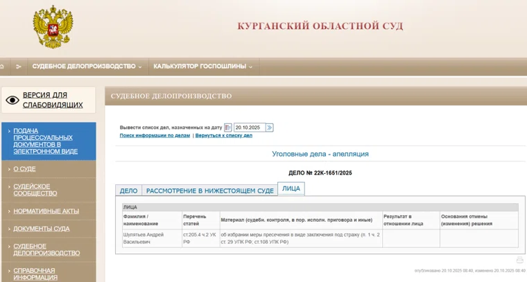 Курганец Шулятьев попал в СИЗО по серьезному обвинению