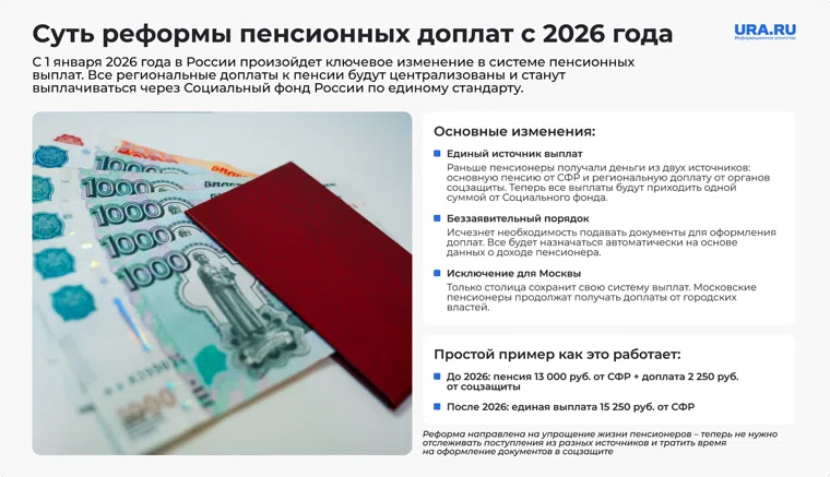 С 1 января 2026 года в России изменится порядок назначения региональных доплат к пенсии. Миллионы российских пенсионеров начнут получать все выплаты одной суммой через Социальный фонд России. URA.RU рассказывает, как изменится система доплат и что это значит для получателей пенсий.