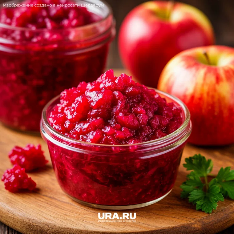 Особенности блюда: яркая икра с насыщенным вкусом, где сладость свеклы гармонично сочетается с кислинкой яблок. Идеально дополняет картофельное пюре, гречку или может подаваться как самостоятельная закуска. Для лучшего баланса вкуса рекомендуются зеленые или желтые кислые яблоки.