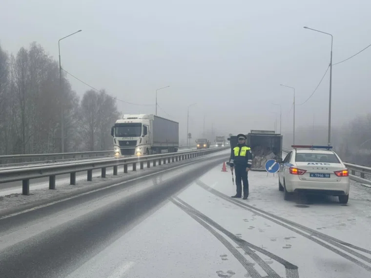 На заснеженной трассе под Екатеринбургом перевернулся грузовик, движение перекрыто. Фото