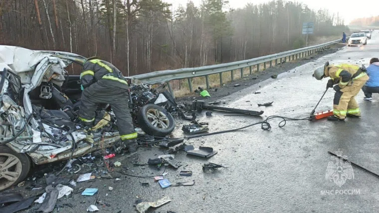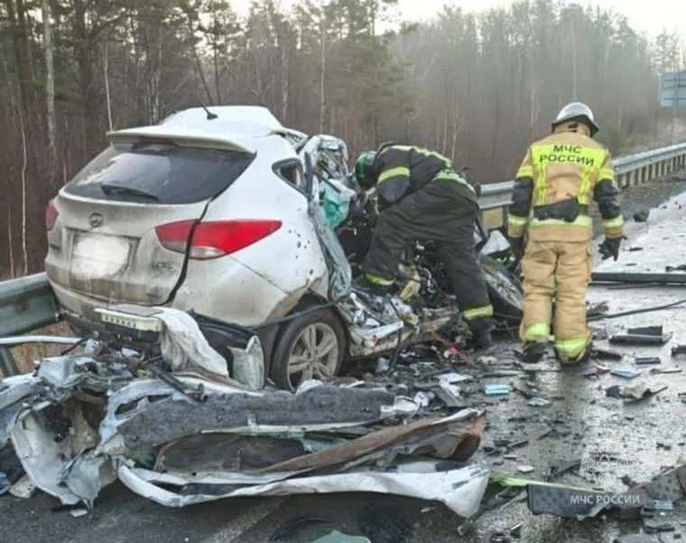 В Саткинском районе Челябиснкой области утром 21 октября в ДТП погибли женщина с ребенком. Они ехали в легковом автомобиле, который врезался в грузовик. Их тела из искореженной машины доставали сотрудники МЧС.