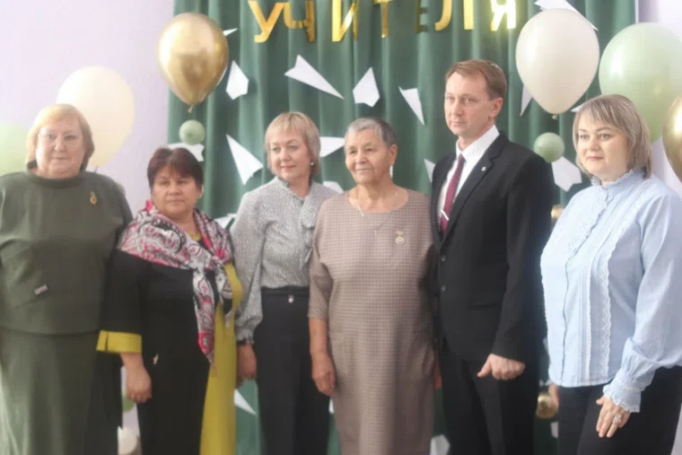 Сталинара Шляхова (на фото в середине) приняла участие в торжественном мероприятии в честь Дня учителя в Кургане