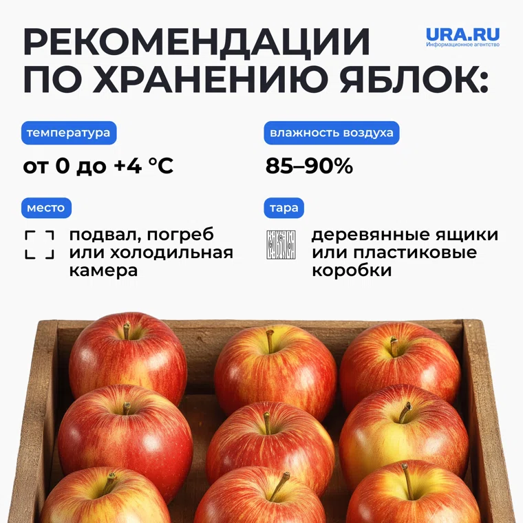 По словам Светланы Самойловой, яблоки можно хранить в погребе, на лоджии или в холодильнике. В погребе они могут находиться до середины весны. На застекленной лоджии при низкой плюсовой температуре эти фрукты можно держать до середины — конца февраля. Небольшое количество яблок можно сохранить на несколько недель в овощном ящике холодильника.
