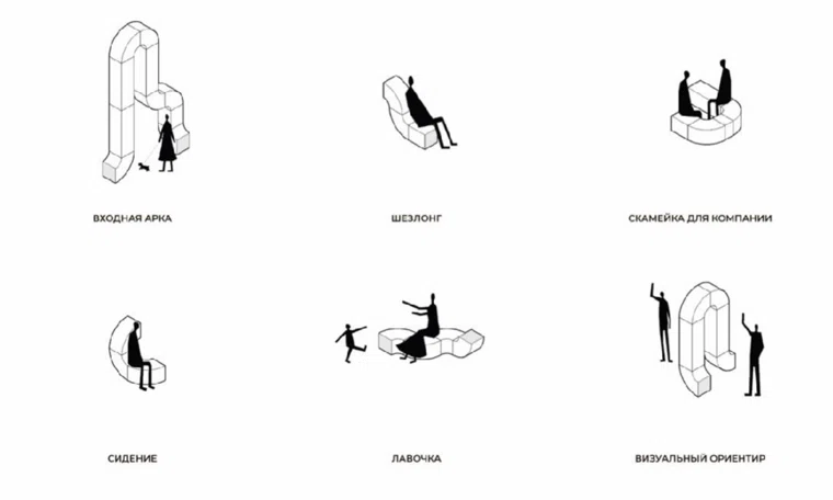 «Наш арт-объект, словно река, обрамляет пространство, создавая различные сценарии использования и коммуникации. На месте башен крепости — арочные проемы, конструкции в нижней части могут использоваться как скамейки и шезлонги», — рассказали авторы проекта.
