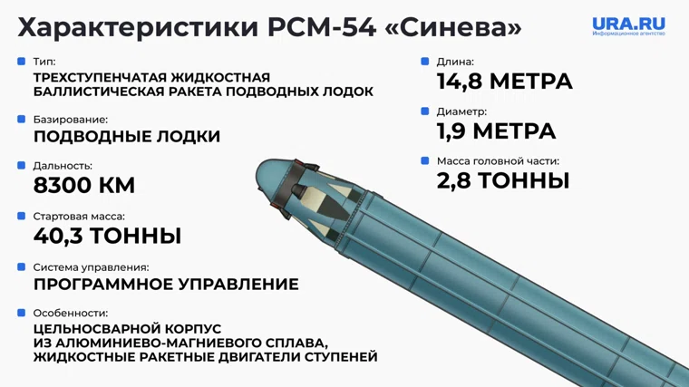 Баллистическая ракета морского базирования РСМ-54 «Синева» поступила на вооружение Военно-морского флота Российской Федерации в 2007 году и запускается исключительно с борта стратегических атомных подводных лодок проекта