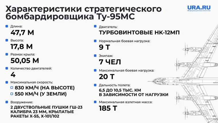 Ту-95МС стоит на вооружении с 1981 года и признан самым быстрым в мире серийным турбовинтовым ракетоносцем, он может развивать скорость до 830 км/ч. Основное назначение этого стратегического бомбардировщика заключается в нанесении ядерных ударов по ключевым военным и стратегическим объектам, расположенным в глубоком тылу противника.