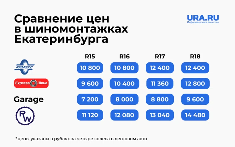Ранее URA.RU подробно рассказывало о стоимости шиномонтажа в популярных сетевых сервисах. Выяснилось, что в сети «Express Шина» за процедуру придется заплатить меньше всего.