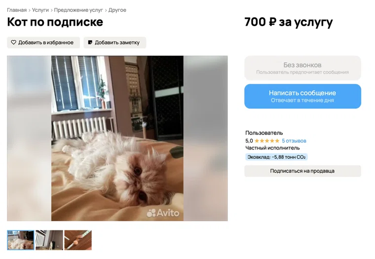 Фото: скрин сайта «Авито», https://www.avito.ru/magnitogorsk/predlozheniya_uslug/kot_po_podpiske_7605925006