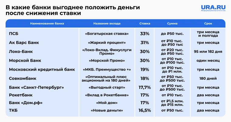 Как снижение ключевой ставки ЦБ повлияло на вклады: в какие банки выгоднее вложить деньги. Инфографика