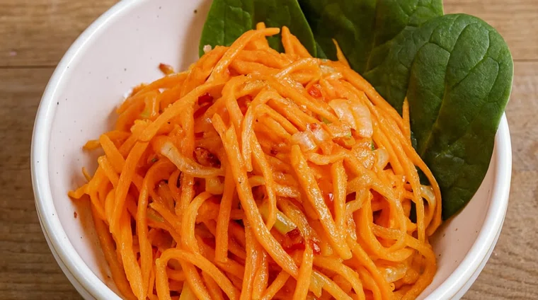 Для ферментации лучше всего использовать молодой плод с плотной мякотью и небольшим количеством семян. От этого зависит не только текстура, но и вкус закуски: слишком водянистая тыква может потерять хрусткость, а старый плод будет сухим и жестким. Очищенную от кожицы и семян тыкву нарезают тонкой длинной соломкой. Если есть специальная терка для корейской моркови, ею пользоваться особенно удобно: нарезка получается равномерной, а специи и рассол лучше проникают внутрь каждого кусочка.