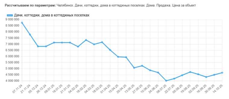 В Челябинске с 16 сентября по 14 октября 2025 года цены на частные дома и коттеджи в садовых некоммерческих товариществах (СНТ) выросли на 8%. В среднем сейчас коттедж можно купить за 4 675 000 рублей, сообщается на сайте о недвижимости.