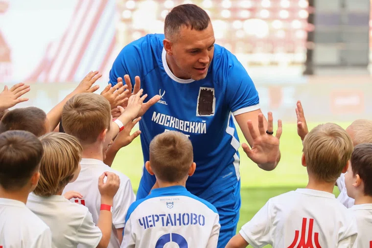 Гала-матч с участием блогера Влада A4, который вместе с профессиональными спортсменами играет с командой из 100 детей, в рамках Дня Московского спорта