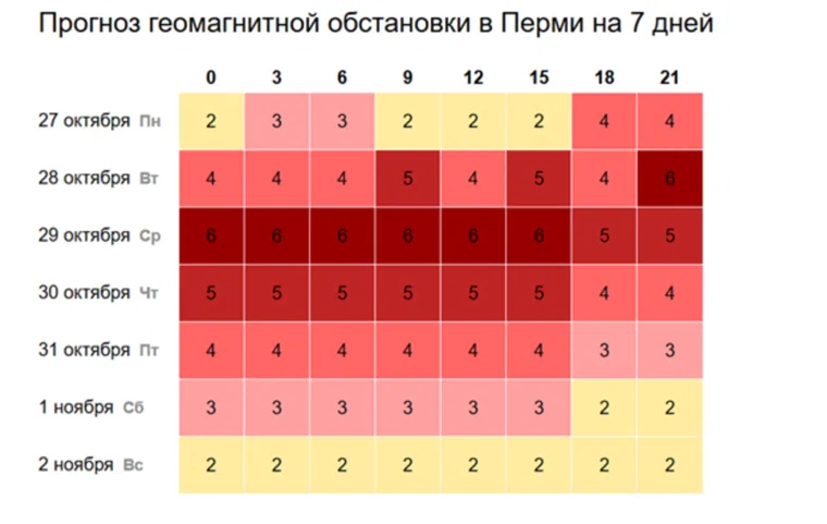 В Перми с 28 октября ожидается сильная магнитная буря. Геомагнитные волнения продлятся до конца месяца. Об этом сообщают эксперты на платформе Time-In.ru.