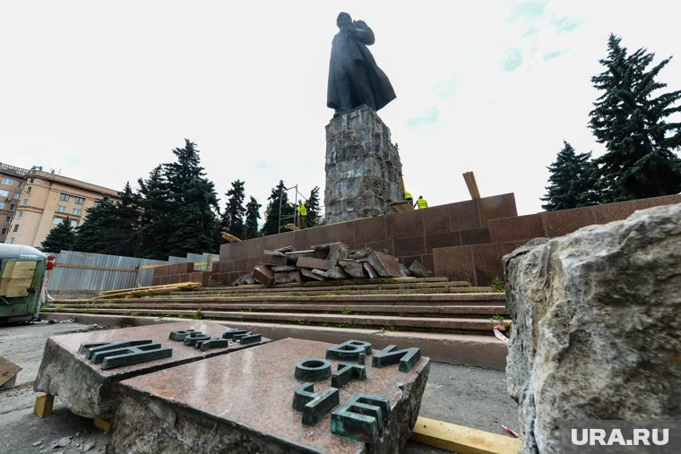 Самого Ильича высотой 8,2 метра отлили на заводе «Монументскульптура» в Ленинграде. На постаменте надпись — «В.И. Ленину от трудящихся Челябинска».