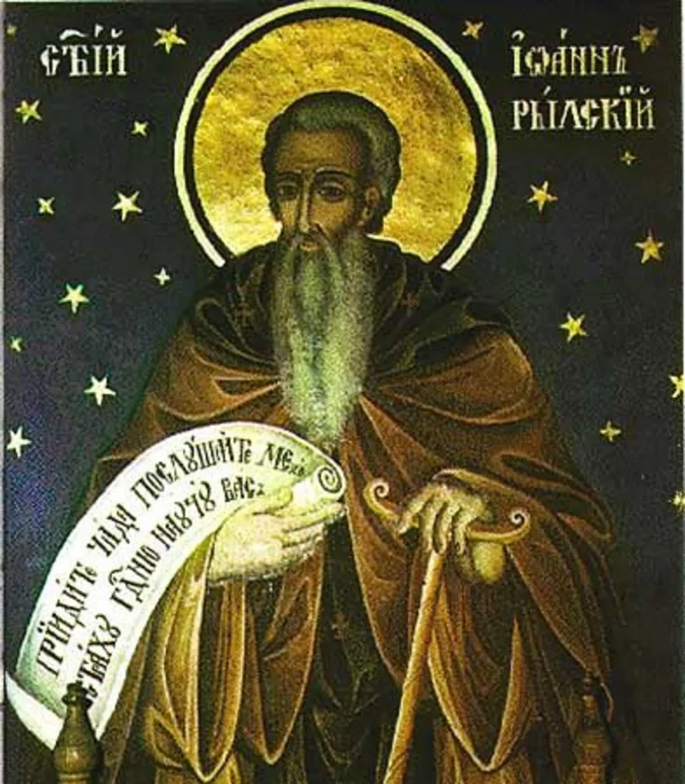 Иоанн Рыльский (ок. 876–946) — преподобный, покровитель Болгарии, духовный наставник и основатель Рильского монастыря. Осиротев в детстве, он посвятил жизнь молитве и подвижничеству, живя сначала в хижине, затем в пещере, питаясь растительной пищей. Известны его чудеса: переправил теленка через реку, насытил пастухов бобами, исцелял больных и одержимых.