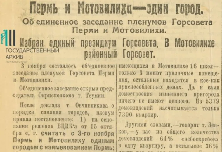 «Считать с 3-го ноября Пермь и Мотовилиху единым городом»: когда Мотовилиха стала частью Перми