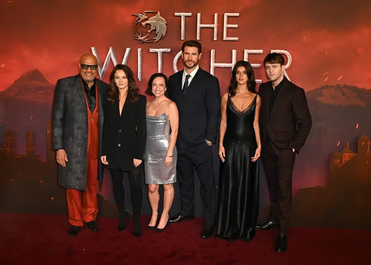 Лоуренс Фишберн, Фрейя Аллан, Лиам Хемсворт, Аня Чалотра и Джои Бейти на премьере четвертого сезона «Ведьмака»